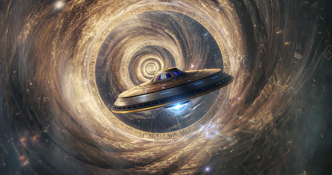 - Futuristic Disc Craft Navigates Cosmic Vortex Conduit