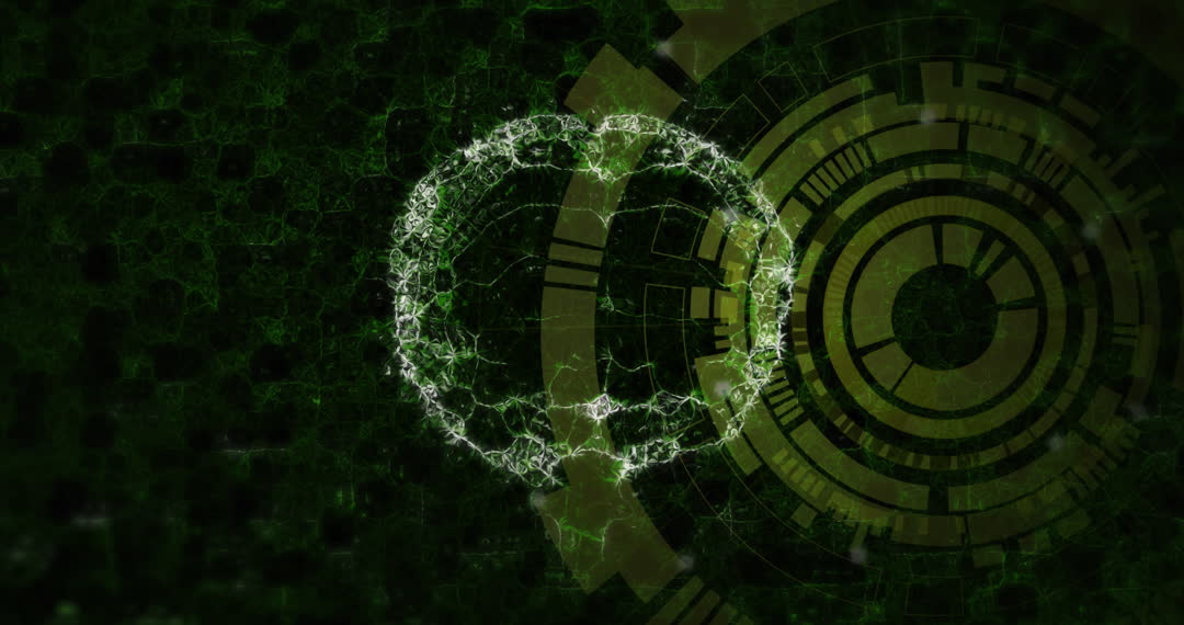 Abstract green digital artwork showcasing interconnected structures of DNA and brain data against a complex matrix design. Perfect for illustrations related to scientific presentations, technological advancements, or data processing themes. Ideal for backgrounds in videos discussing biotechnology, neuroscience, or computational theories.