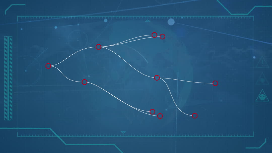 This visual depicts a digital representation of a DNA strand within a technologically advanced interface. The animation shows red connection points which emphasize digital technology and interconnectedness. It is ideal for projects involving biotechnology, digital interfaces, network solutions, or futuristic technology.