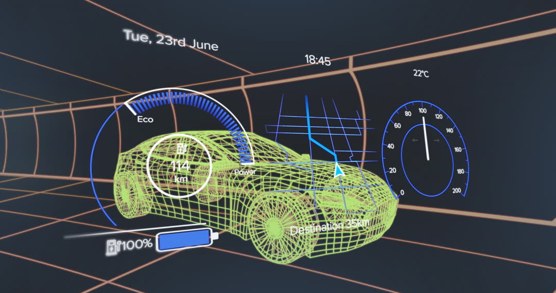 - Futuristic Electric Car Dashboard Concept with Holographic Elements