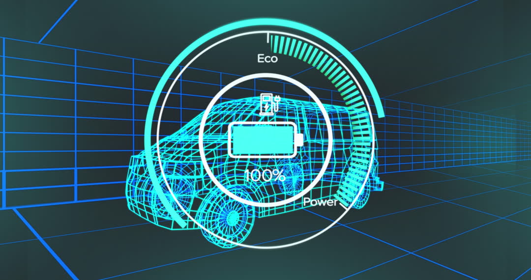 - Futuristic Electric Van Concept with Battery Level Indicator