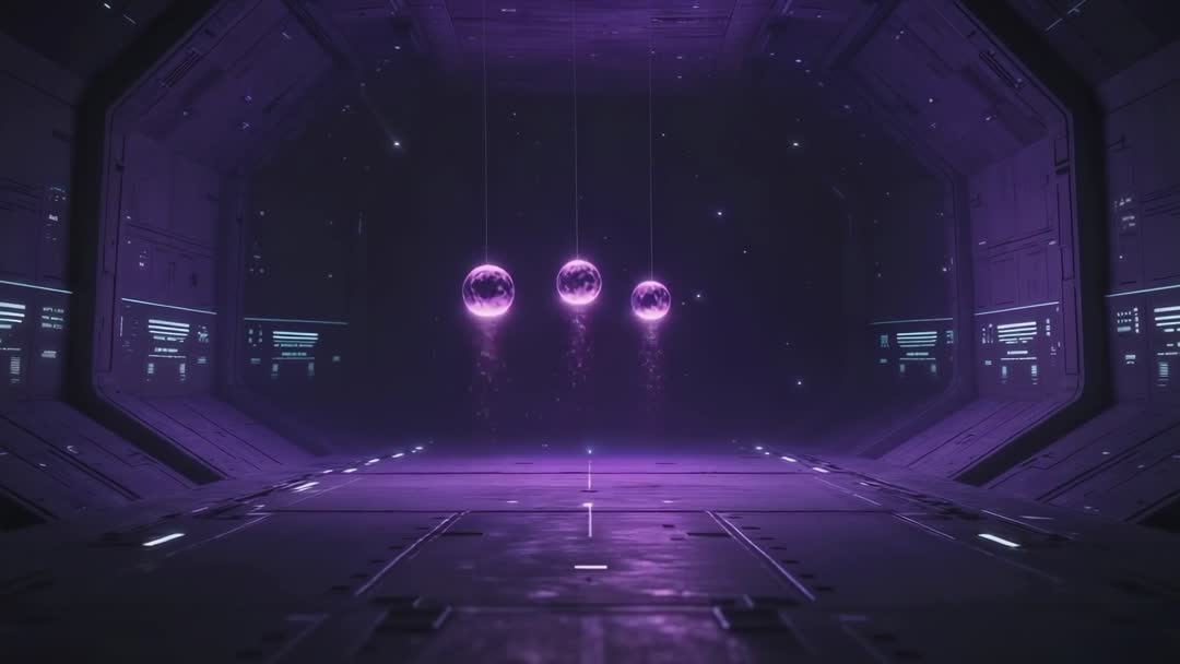 AI Generated Image. Three floating purple energy spheres pulse in a high-tech laboratory with a futuristic interior. Ideal for themes related to modern technology, innovation, or sci-fi digital environments. Perfect for use in video game design, film concepts, or promotional materials for technology-focused industries.