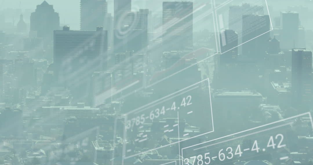 Digital visualization featuring futuristic financial data overlays blending with a cityscape in background. Ideal for illustrating global business concepts, technological advancements in financial sectors like fintech, or thematic videory needs for presentations on urban development or investment strategies.
