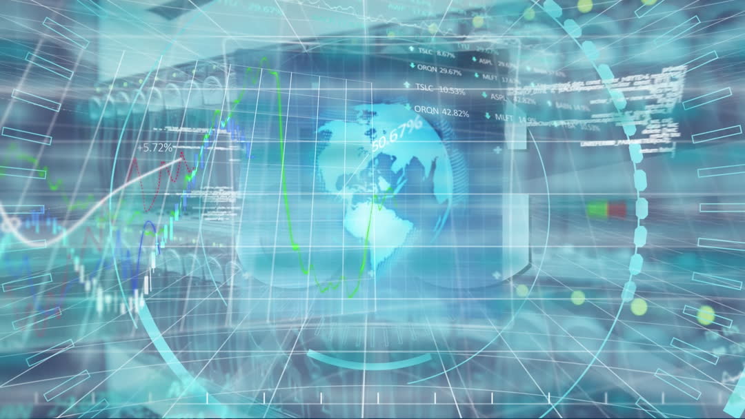 Futuristic Financial Data on Digital Screen with Global Focus Video
