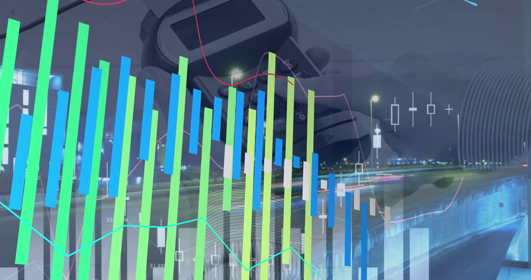 Futuristic Financial Data Visualization with Cityscape Background Video