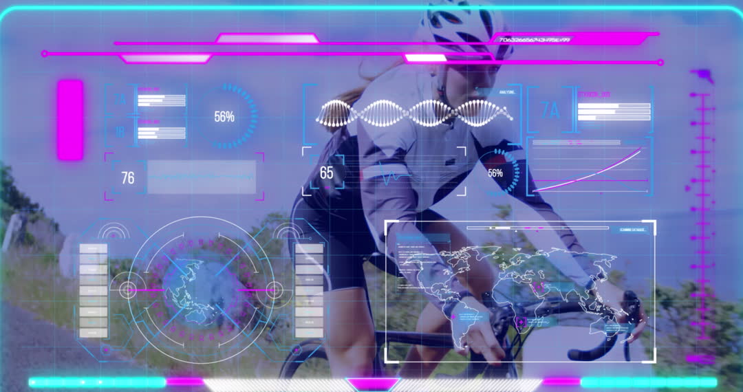 - Futuristic Fitness Data Overlay on Female Cyclist