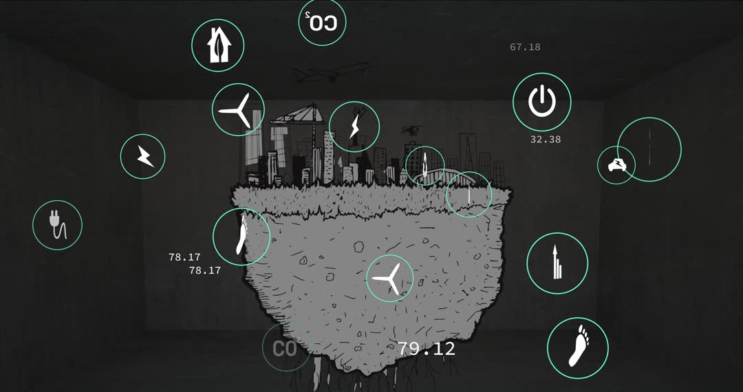 Futuristic Floating City with Technological Icons in Dark Room Video