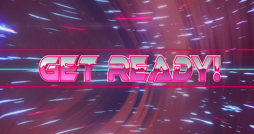 Design features dynamic 'Get Ready' text with neon effects and moving lines, creating a sense of anticipation and excitement. Useful for video game intros, tech-themed presentations, digital advertisements, and event inaugurations.