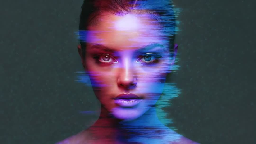 Futuristic Glitch Effect on Model's Face AI Digital Art Video