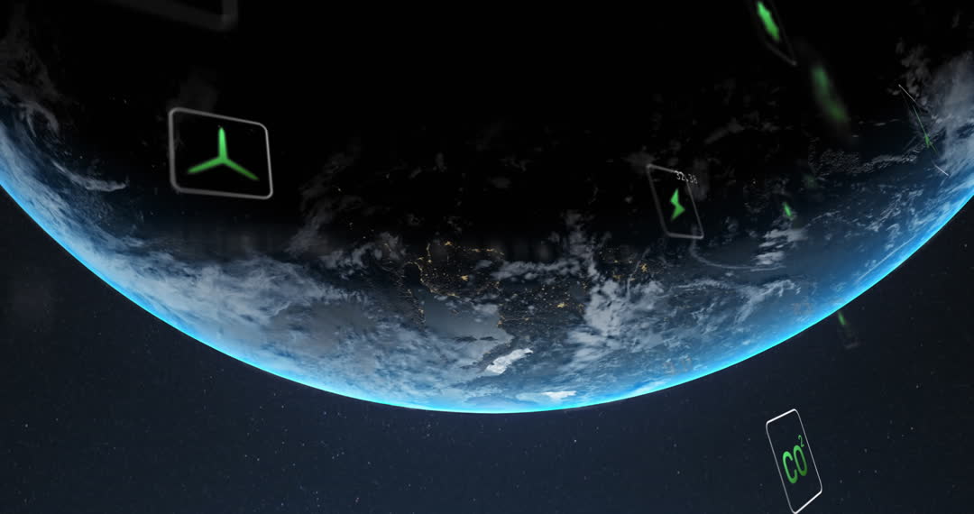 Rendering showcases a rotating globe surrounded by floating digital holograms symbolizing energy and technology. Useful for illustrating global innovation in energy, digital connectivity, technological advancement, and environmental themes. Ideal for backgrounds, websites, educational resources, and concept presentations on green technology or cybersecurity.
