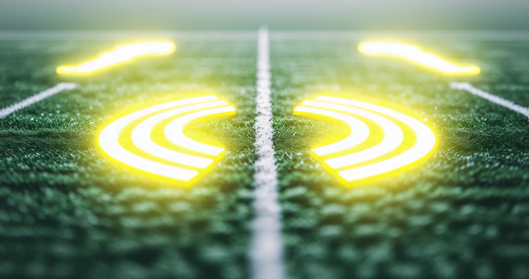 - Futuristic Glowing Symbols on Symmetrical Sports Field Turf