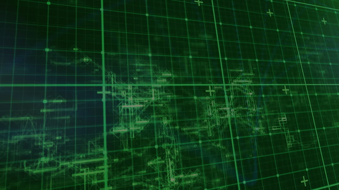Abstract video featuring an advanced digital grid with dynamic hexagonal patterns and intersecting lines on a green and black background. Ideal for illustrating cutting-edge concepts in technology, virtual reality, data analytics, science fiction themes, or network architecture.