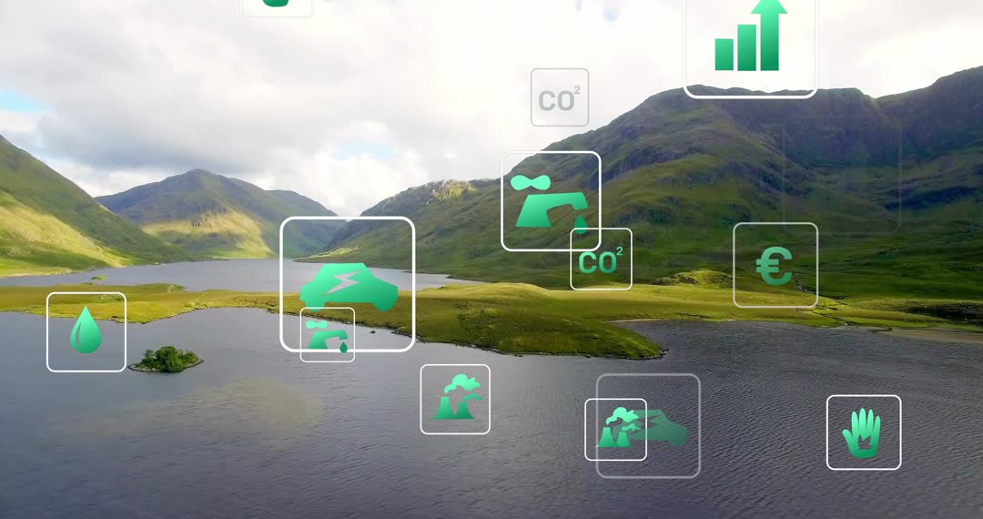The video shows icons related to sustainability and ecology floating over a tranquil lake. It emphasizes themes of green energy, conservation, and environmental awareness. Ideal for promoting eco-friendly products, sustainability reports, and environmental education materials.