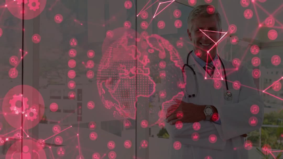 Futuristic Health Technology with Doctor and Holographic Global Network Video