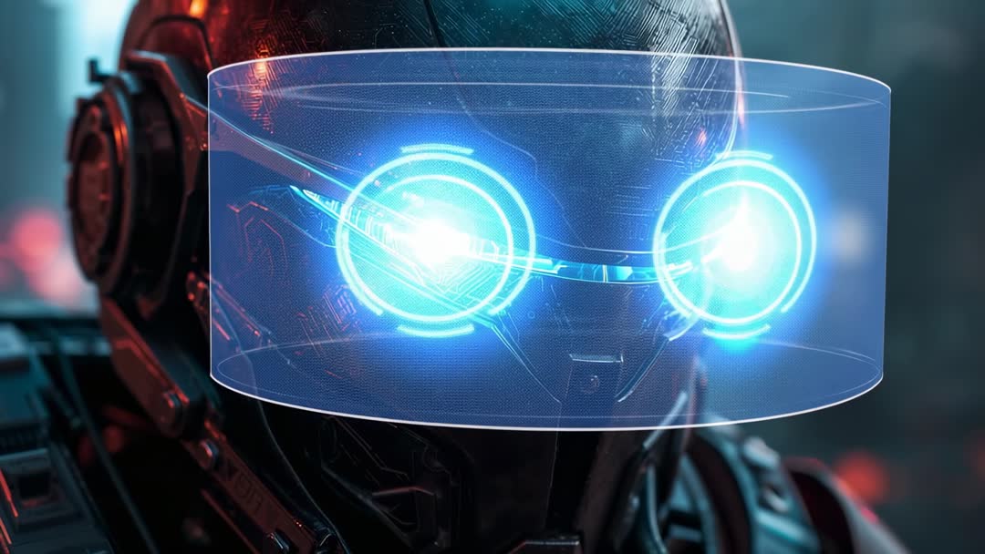 AI Generated Image. This video shows futuristic helmet technology activating holographic rings used in scanning systems. Unique integration of cybernetic and robotic technology is ideal for illustrating concepts of advanced diagnostics and innovation in technology or science fiction settings. Great for sci-fi film concepts, tech exploration articles, and showcasing advancements in AI and robotics.