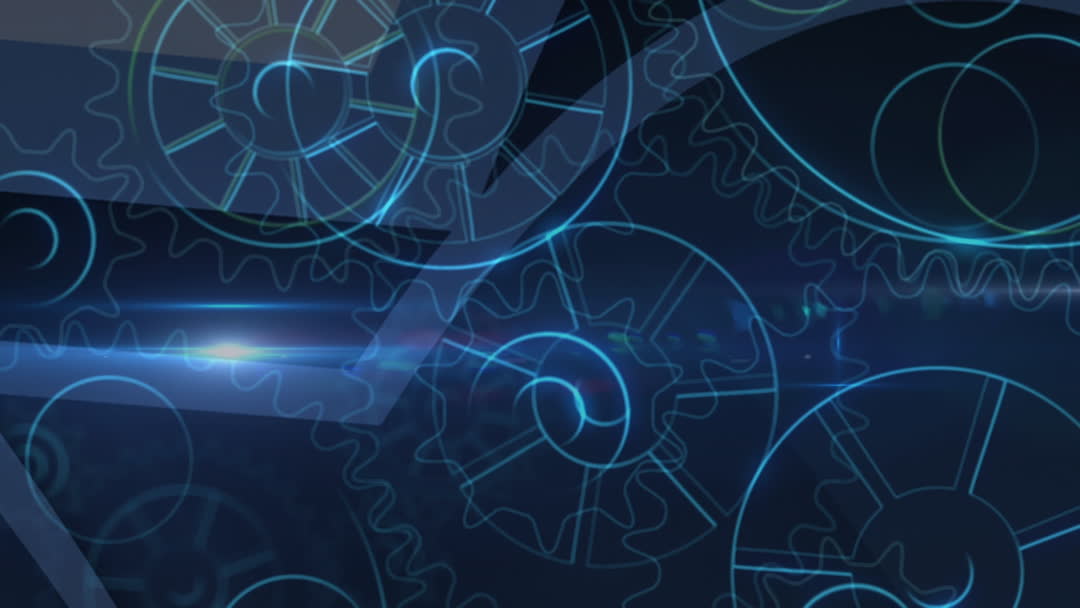 Animation depicting glowing gears over a blue beam, symbolizing the concept of futuristic technology and mechanism. Ideal for use in presentations, technology-oriented websites, or educational materials highlighting innovation, digital mechanics, or engineering projects.