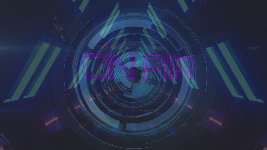 Dynamic and vibrant design featuring a digital holographic display reading 'On Air'. With its futuristic aesthetic and interactive feel, this illustration is ideal for technology-themed projects, presentations in digital media, or graphics needing a high-tech infusion. Perfect for broadcasts, media invitations, or any virtual environment emphasizing progress and modernity.
