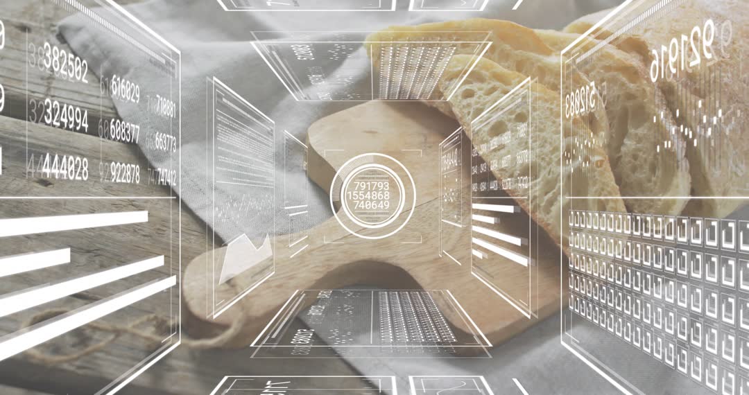 Futuristic HUD Scanning Bread in Kitchen Analytics Video