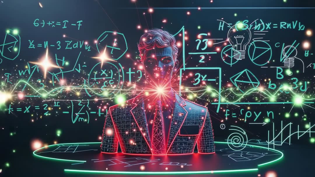 - Futuristic Human Hologram with Equations and Digital Sparks