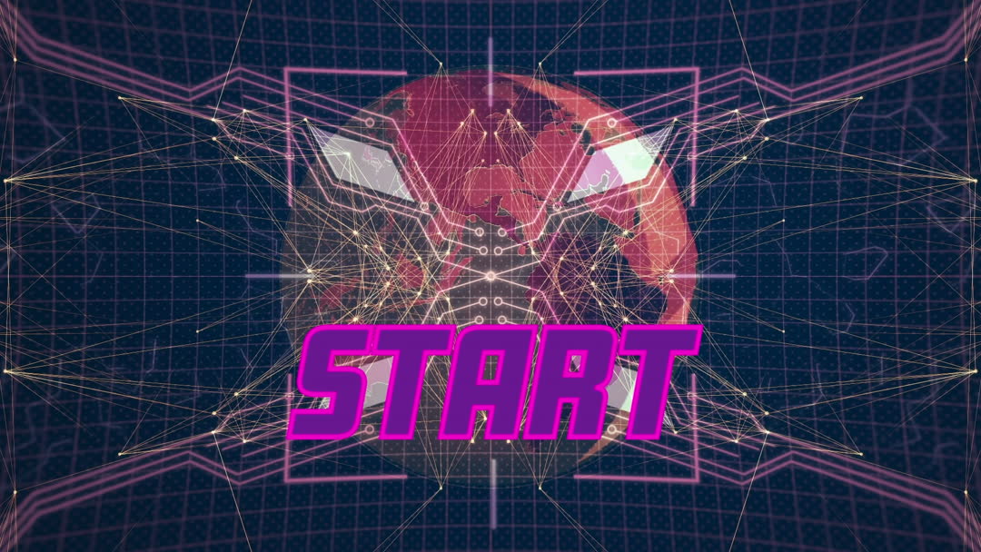 - Futuristic Interface Overlay with Start Text and Connected Network