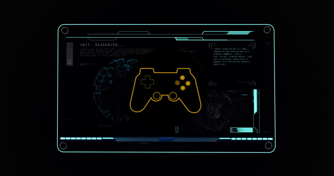 - Futuristic Interface with Gamepad Icon and Data Visualization