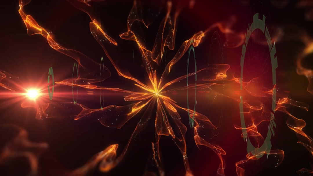 Vibrant digital animation features a dynamic interplay of orange glowing energy with pulsing cybernetic structures interacting with circular elements. Ideal for use as a technological background in presentations, video edits, or promotional materials highlighting modern technology, innovation, or sci-fi themes.