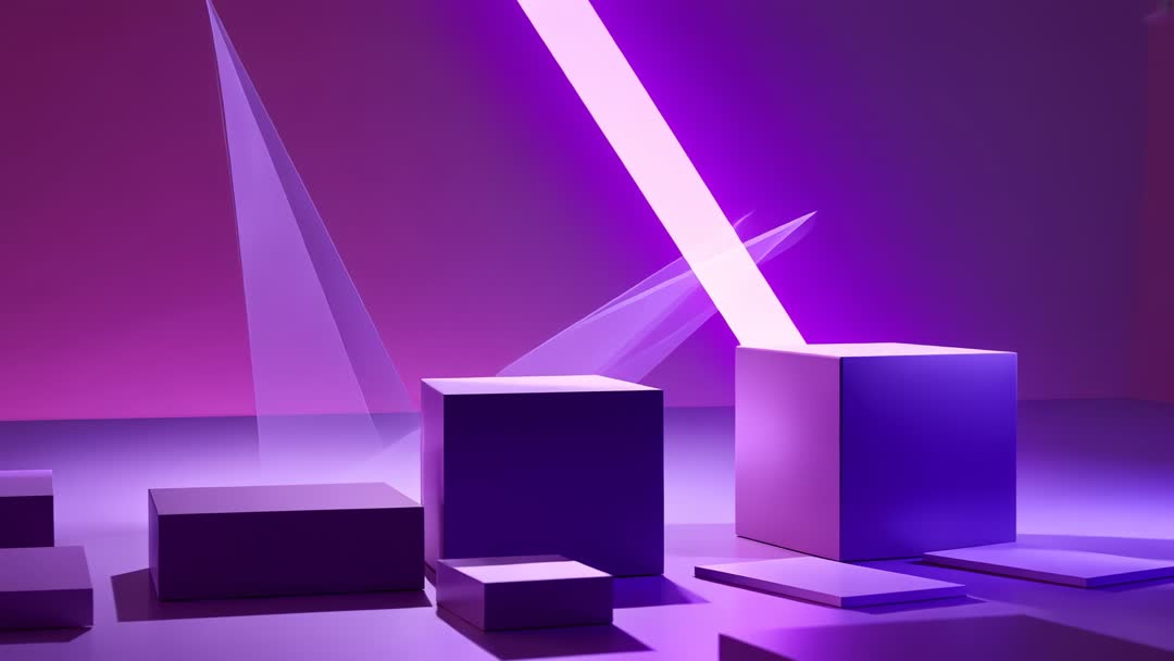 AI Generated Image. This video captures an ethereal magenta beam glowing through an abstract studio arrangement. A collection of matte cubes and a translucent prism are highlighted, producing a calming futuristic feeling. Perfect for use in creative design projects, multimedia presentations, or as thought-provoking corporate visuals in need of an innovative and modern edge.