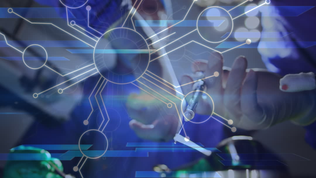 The video visualizes the blend of advanced technology and surgical healthcare practices with an animated digital overlay. Use this as a metaphor for innovations in medical technology, showcasing the future of healthcare and surgical developments for presentations, blogs, or informational materials on modern medicine and global advancements.