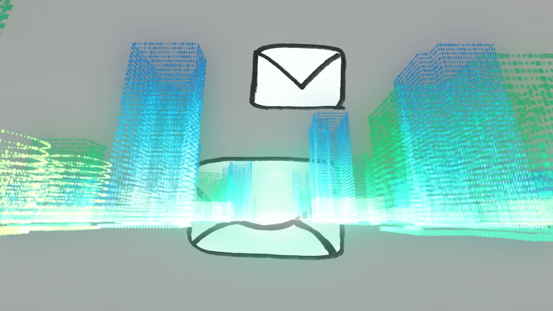 A creative illustration displays message icons superimposed on a digitized 3D cityscape, highlighting futuristic communication and networking technology themes. The video conveys a sense of modernity and connectivity ideal for use in presentations, digital communication campaigns, or educational materials exploring advancements in technology and business data environments.
