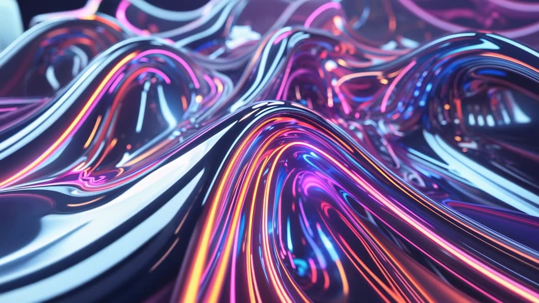 Futuristic Metallic Waves with Neon Streaks in 3D Studio Video