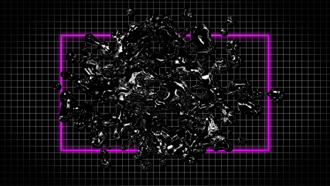 Intricate abstract visuals are enhanced by a glowing neon rectangle over a black digital grid background, making it ideal for technology advertizing, digital art projects, or backgrounds in sci-fi content creation.