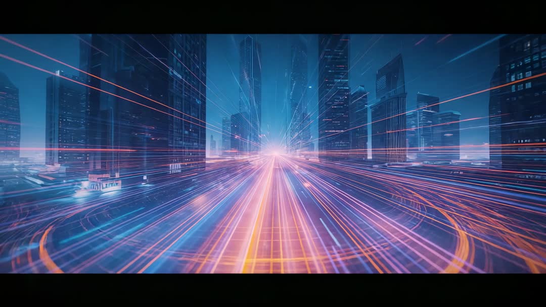 AI Generated Image. This video showcases a high-tech futuristic city with neon light trails and a vivid urban atmosphere. The fast-moving convergence of light creating the effect of high speed is ideal for projects related to sci-fi themes, technology presentations, and digital art exhibitions. It can effectively represent concepts in computing, networking, or futuristic transportation.