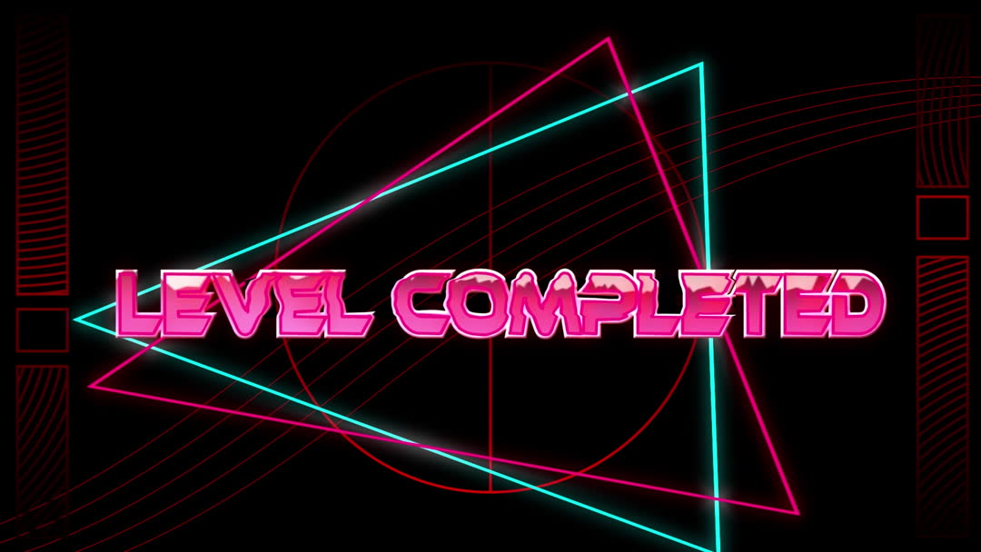 Futuristic Neon Level Completed Graphic on Dark Background Video