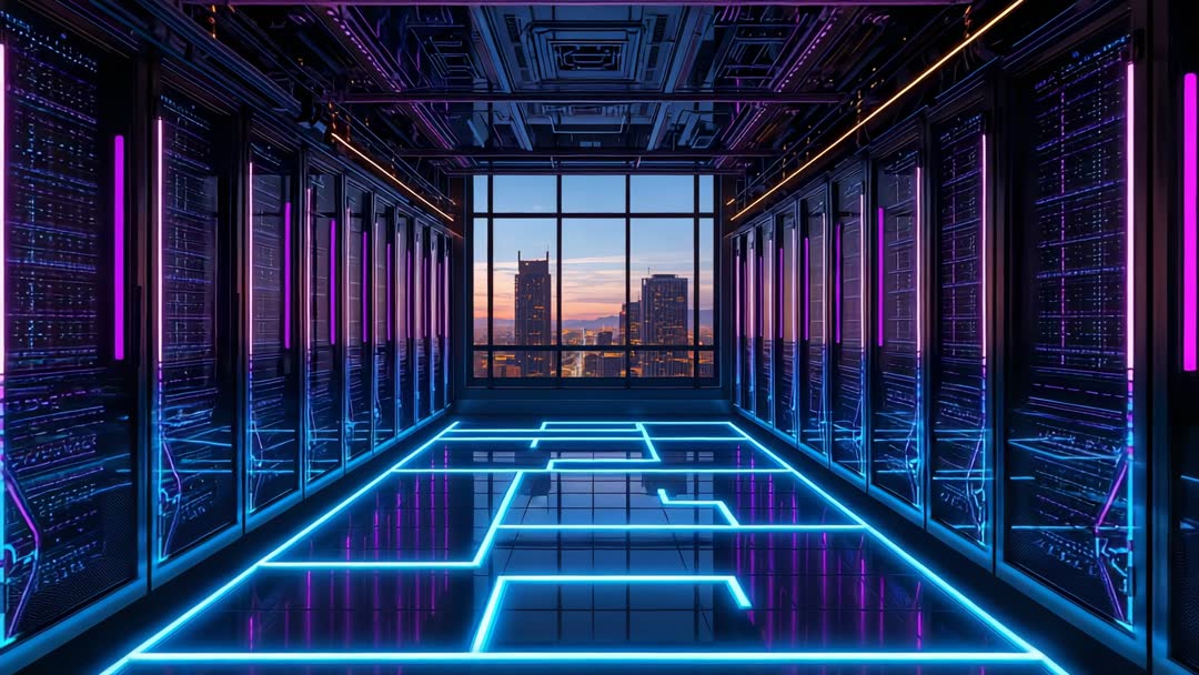 - Futuristic Neon-Lit Corridor in Advanced Data Center