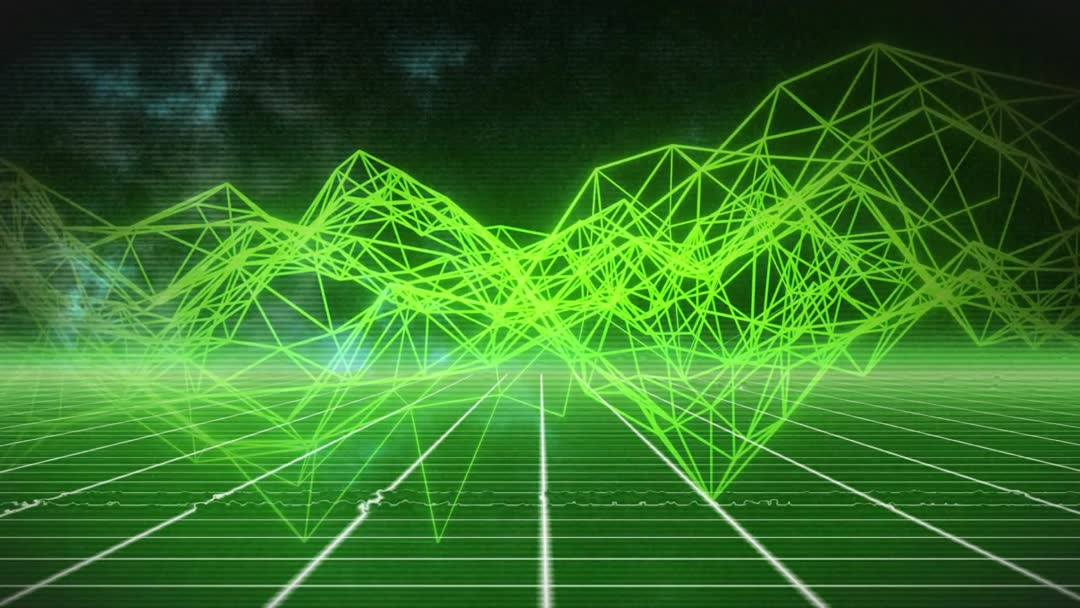 Futuristic Neon Mesh Grid with Abstract 3D Terrain Video