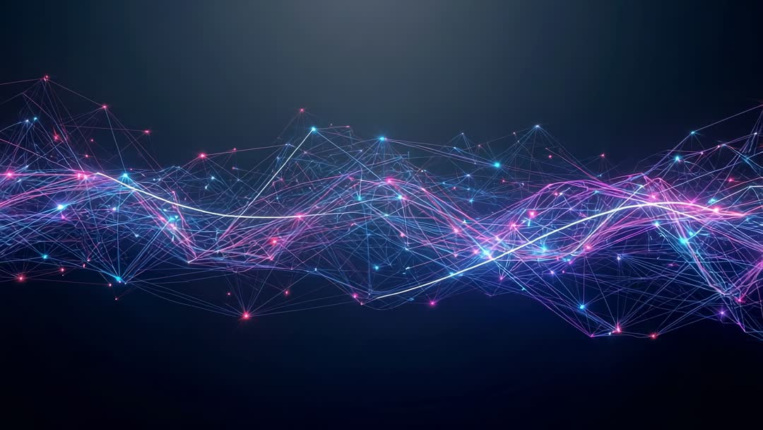 AI Generated Image. This animation shows an undulating mesh of glowing interconnected nodes set against a dark background, giving off vibrant neon gradients. Ideal for technology, digital innovation, and network-themed concepts. Perfect for presentations, explainer videos, or as a background for events showcasing cutting-edge AI and data tech.