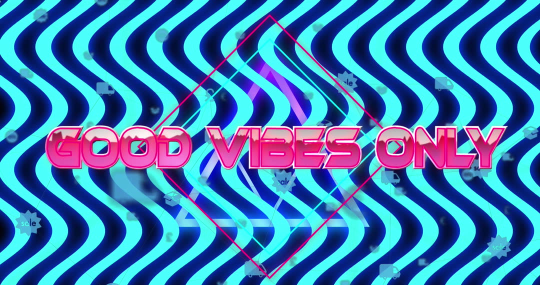 Bright and vibrant neon text amidst dynamic wavy blue lines evokes themes of positivity and motivation. Ideal for presentations, digital media, and promotional content needing a modern, upbeat touch.