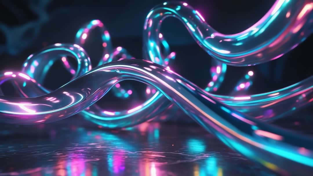 Futuristic Neon Tubes with Vibrant Colors and Reflective Surface Video