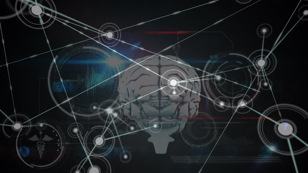Visually depicting the concept of artificial intelligence, the video shows a brain at the center with digital connections and data interface elements surrounding it. Ideal for use in tech articles, presentations about AI innovations, or discussing future trends in machine learning and neural networks.