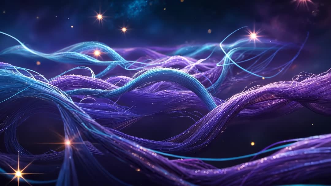 AI Generated Image. Vivid depiction of glowing fiber-like strands representing neural networks in a cosmic and abstract setting. These ethereal strands undulate and sparkle, creating a futuristic feel perfect for presentations or articles about digital technology, AI development, or cosmic phenomena. Ideal for visual projects conveying innovation and the evolution of technology.