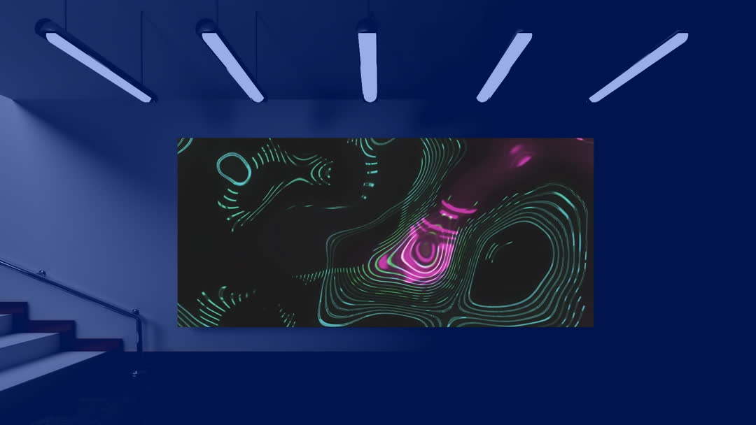 Futuristic Office Space with Abstract Digital Display Video