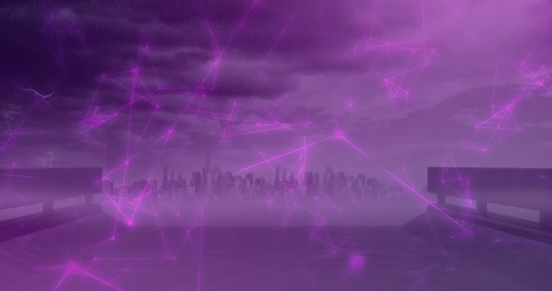 - Futuristic Purple Network in Moody Skyline Atmosphere