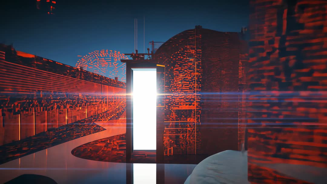 Futuristic Red Digital Scene with Glowing Portal Video