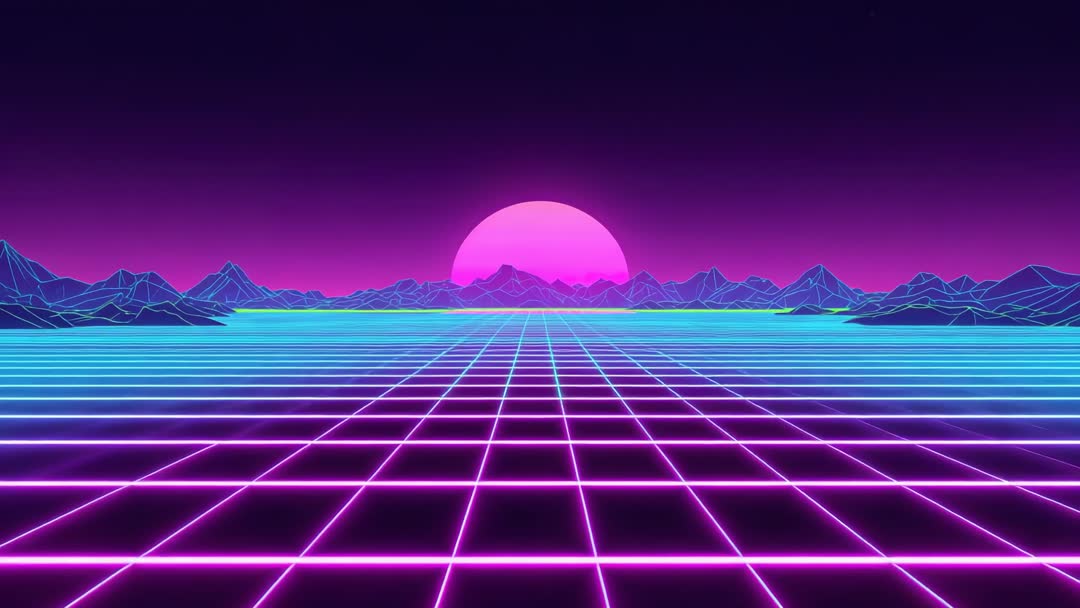 - Futuristic Retro Video with Neon Sci-Fi Horizon and Pulsing Grid
