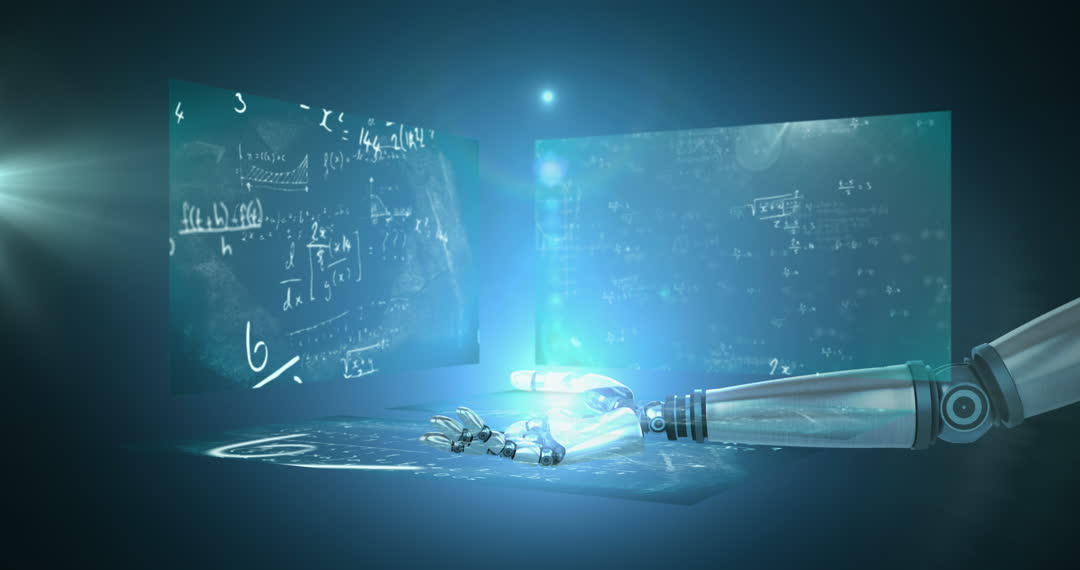 - Futuristic Robot Arm Holographic Mathematical Interface