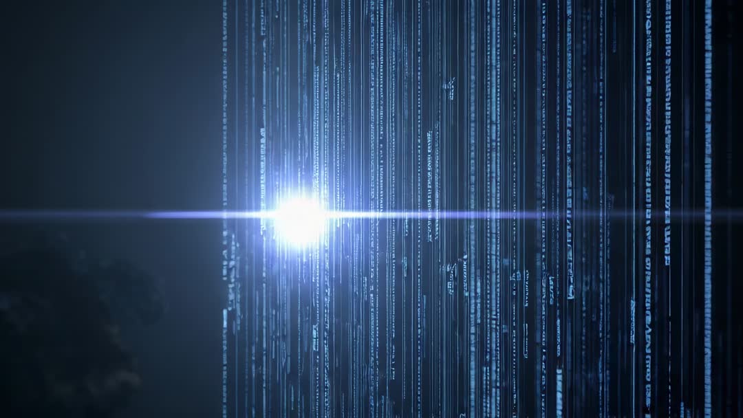 AI Generated Video. Dynamic visualization of a glowing orb emitting cascading lines of code, representing data initiation or cybersecurity. Ideal for projects related to AI, advanced technologies, cyber noir themes, or promotional videos examining digital transformation or IT solutions.