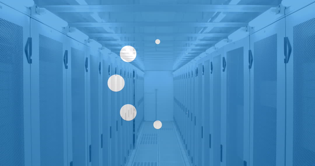 Visual representation of a modern server room with an overlay of animated elements, symbolizing digital innovation and connectivity. Suitable for illustrating concepts in technology, data management, network security, and financial technologies. This depiction can be used in tech-related publications, presentations, and websites.