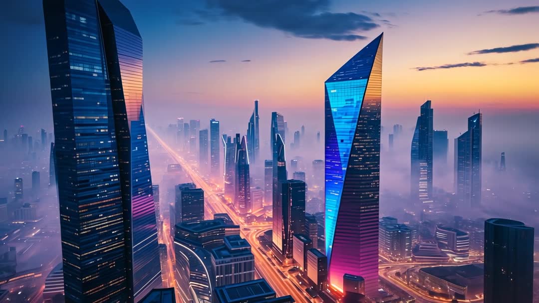 - Futuristic Skyscrapers Illuminated in Urban Metropolis at Dusk