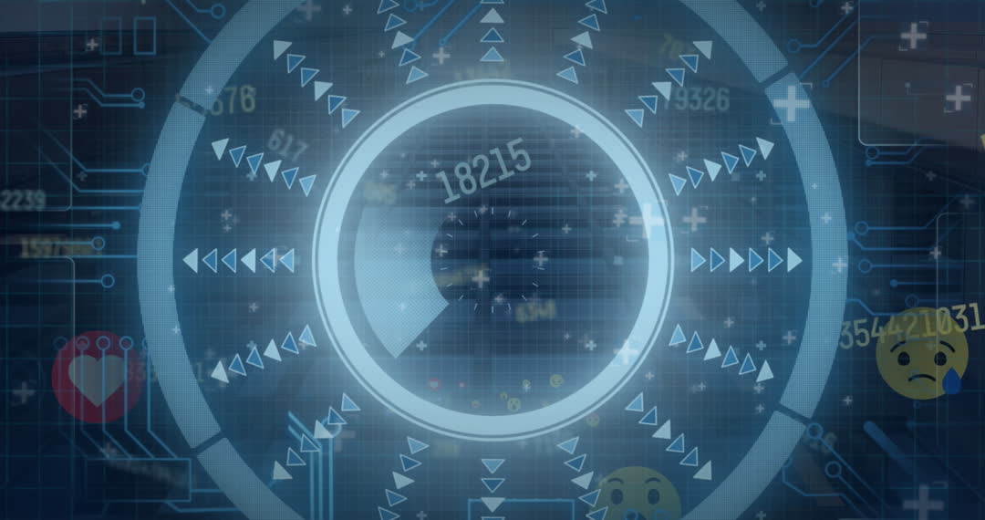 Embracing the theme of digital connectivity and analysis, this visual features a futuristic round scanner displaying changing numbers alongside social media emojis. Powerful in its illustration of social media analytics, it serves as an apt representation for technological advancements, data analysis concepts, or social networking communications. Ideal for use in tech blogs, marketing presentations, or digital transformation content.