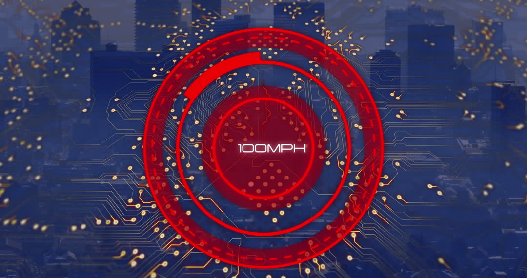 Futuristic Speedometer Scanner with Digital Metropolis Background Video